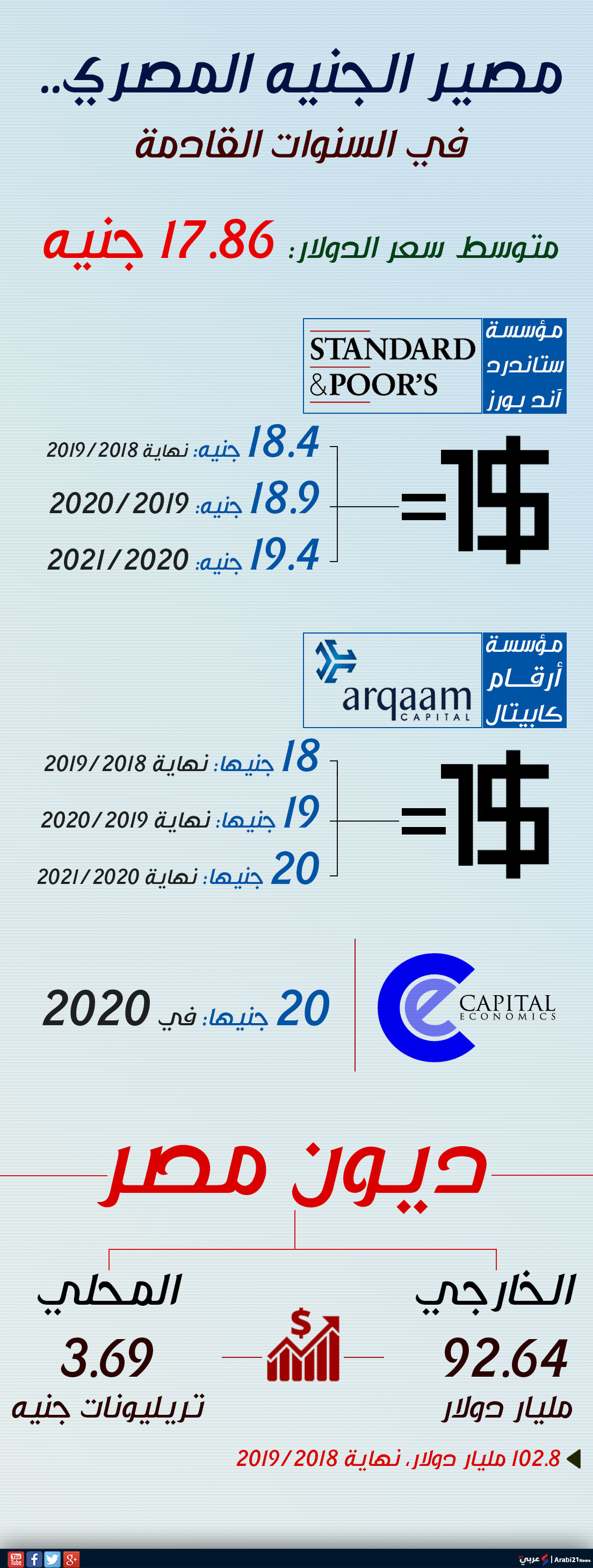 وكانت مؤسسات مالية كبرى كمؤسسة "أرقام كابيتال" و"كابيتال إيكونوميكس"توقعت في وقت سابق استمرار صعود الدولار أمام الجنيه خلال السنوات الثلاث المقبلة أيضا.