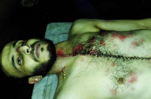 وتظهر الصور وجود آثار كدمات وسحجات في مناطق مختلفة من جسد الشهيد، خاصة في رقبته وصدره وظهره، فضلًا عن آثار ضرب في أنفه.