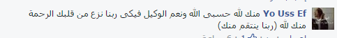 - :Yo Uss Ef "منك لله حسبي الله ونعم الوكيل فيكي ربنا نزع من قلبك الرحمة منك لله (ربنا ينتقم منك)".